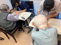 お花飾りの『レイ』を身に着け、フラダンスの美しい振付を教えていただきながら体を揺らし、楽しい時間を過ごしました。