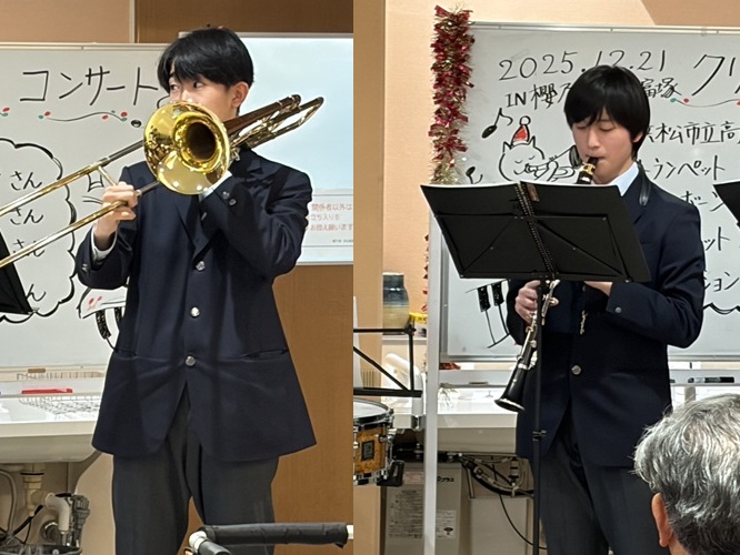 浜松市立高校の吹奏楽部の生徒さん4名が